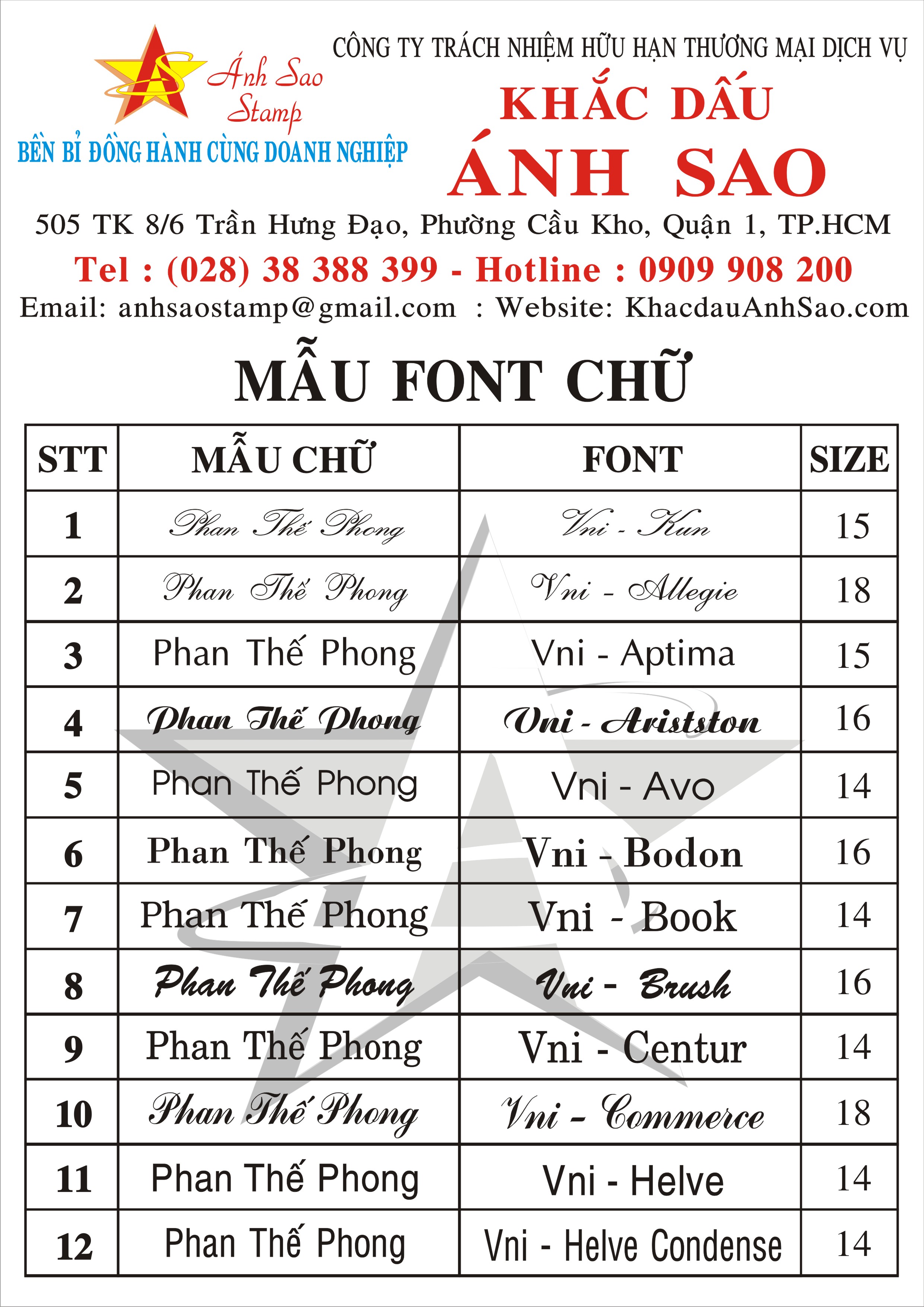 ★★★★★ CÔNG TY KHẮC DẤU ÁNH SAO - KÍNH CHÀO QUÝ KHÁCH ★★★★★ BẢO HÀNH MẶT DẤU VĨNH VIỄN ★★★★★ SỬA CHỮA MIỄN PHÍ ★★★★★ CÔNG TY KHẮC DẤU ÁNH SAO - KÍNH CHÀO QUÝ KHÁCH ★★★★★